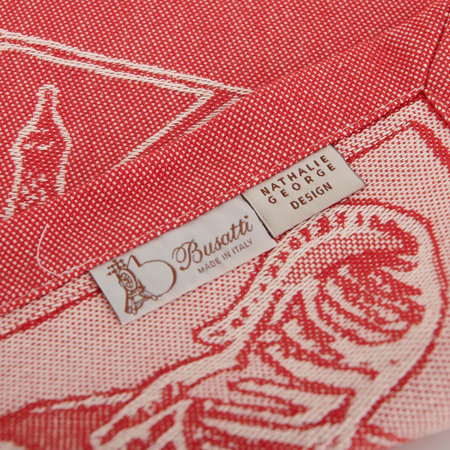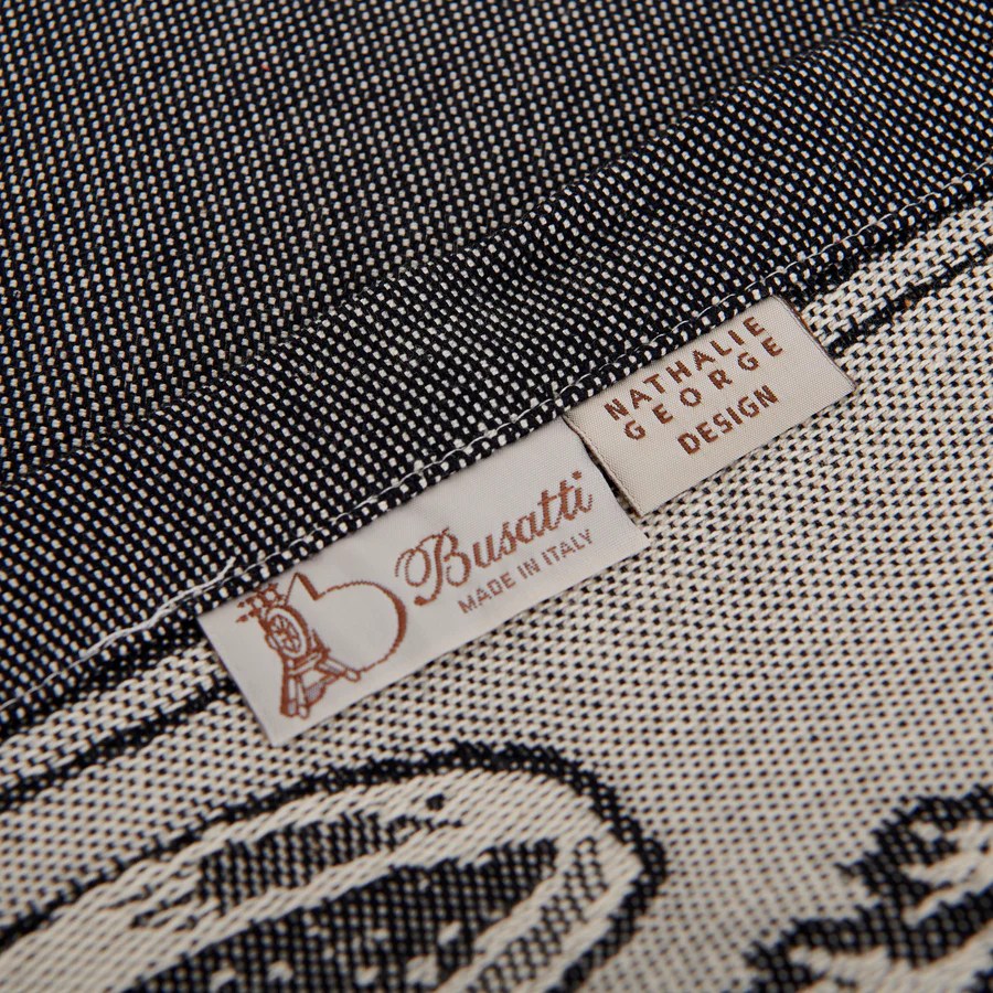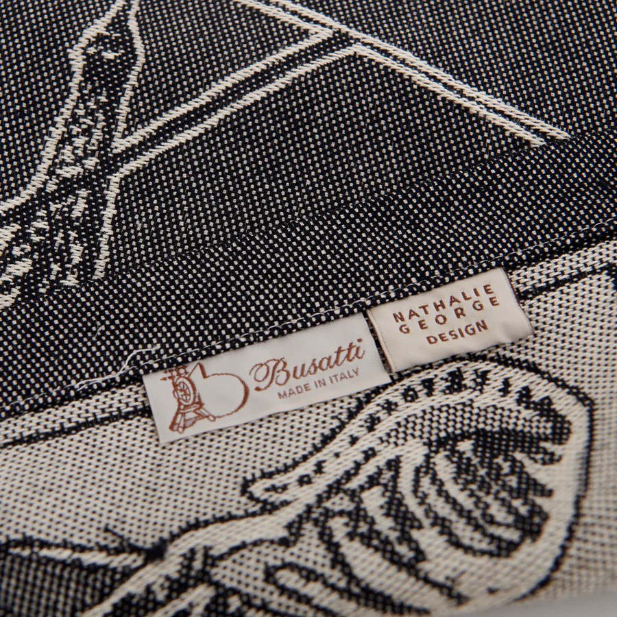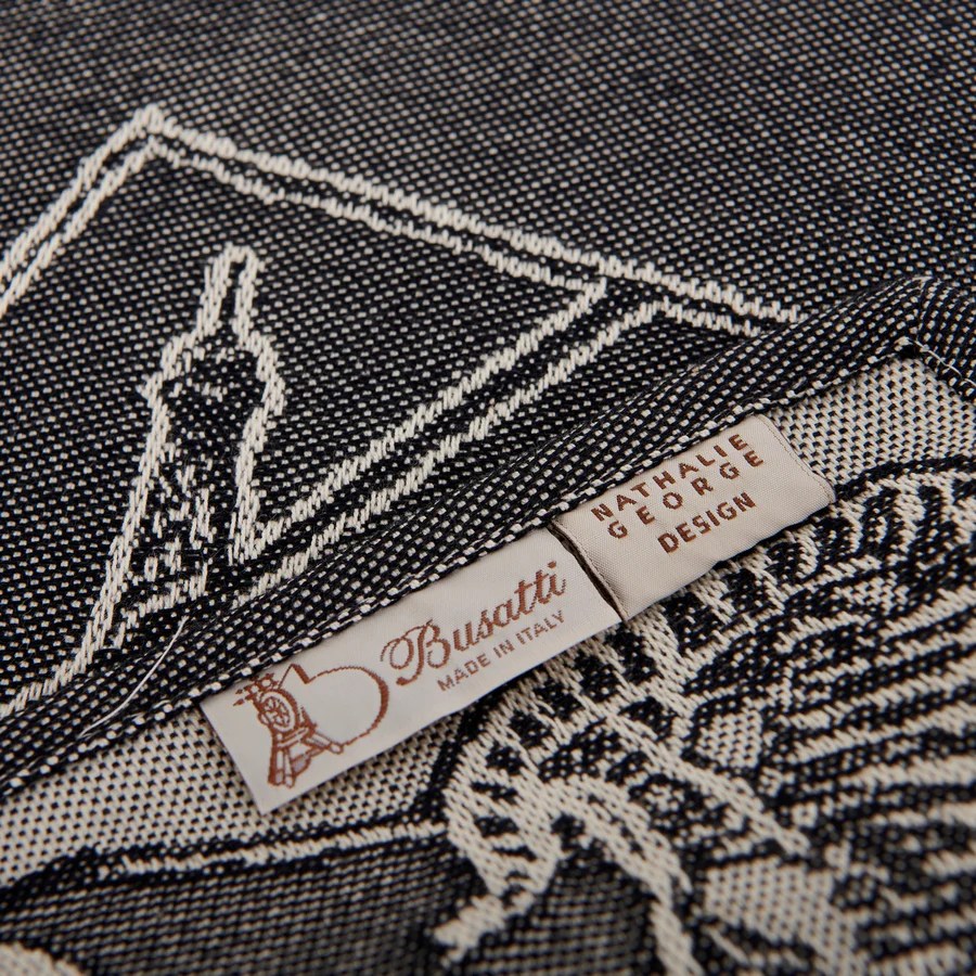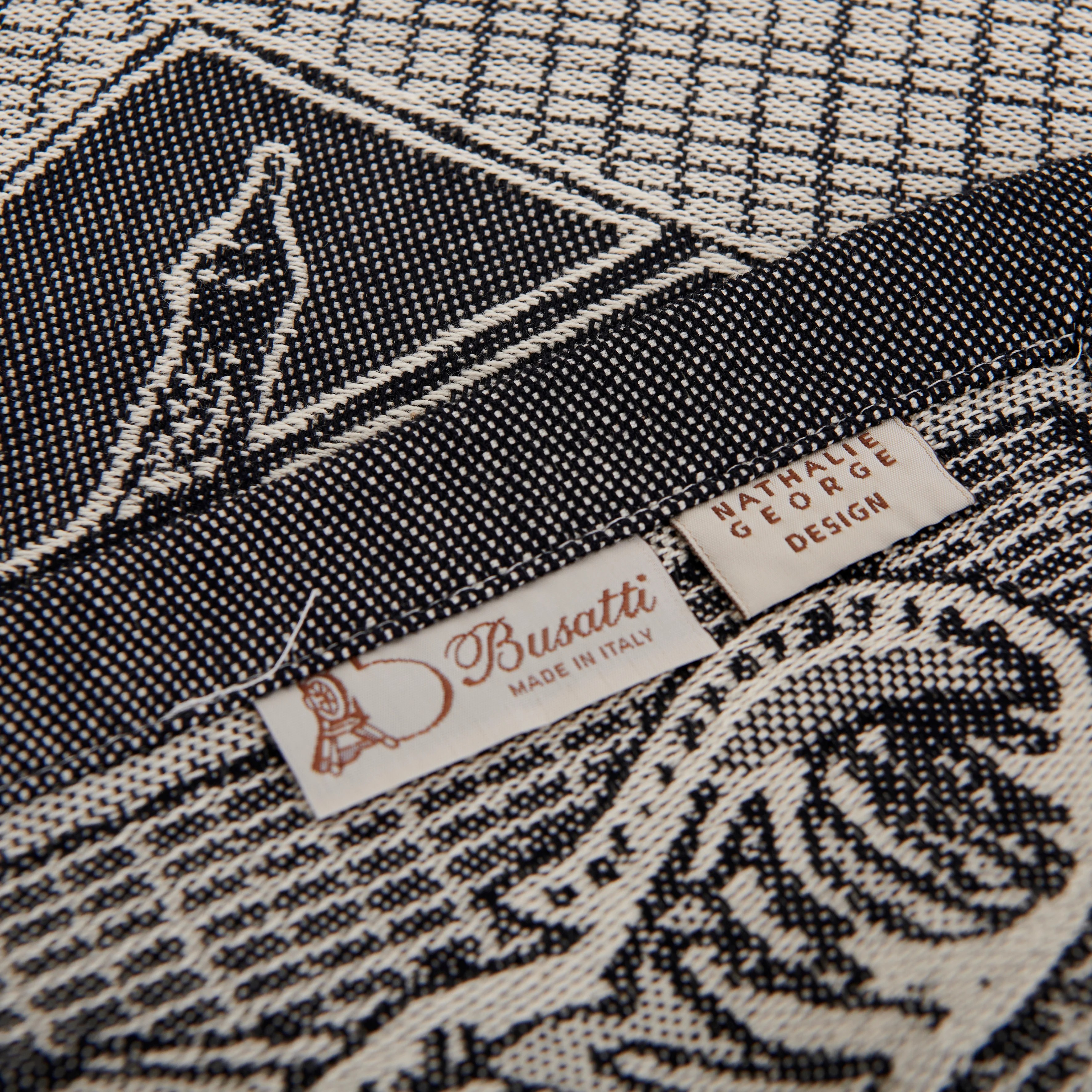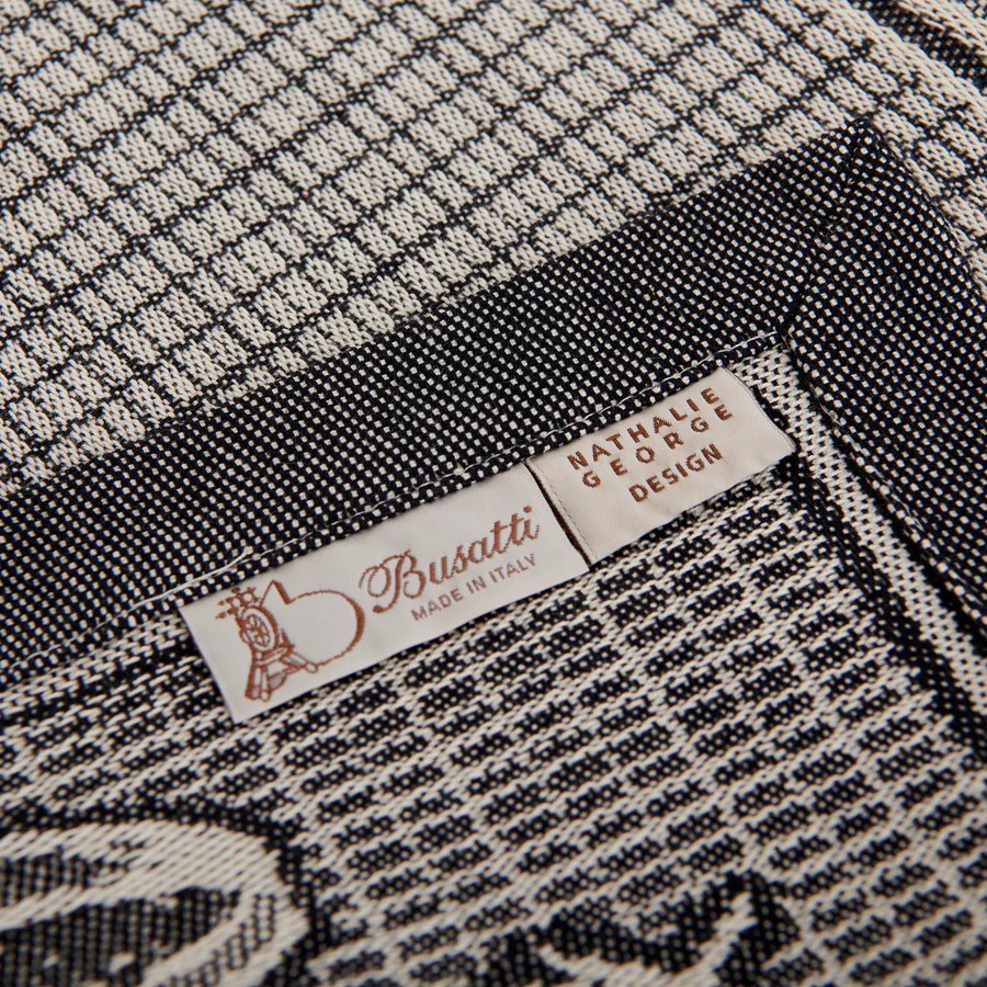 Matière et fabrication : 100% coton, fabriqué sur les métiers à tisser jacquard des ateliers historiques de Busatti à Anghiari – Toscane (province d’Arezzo).