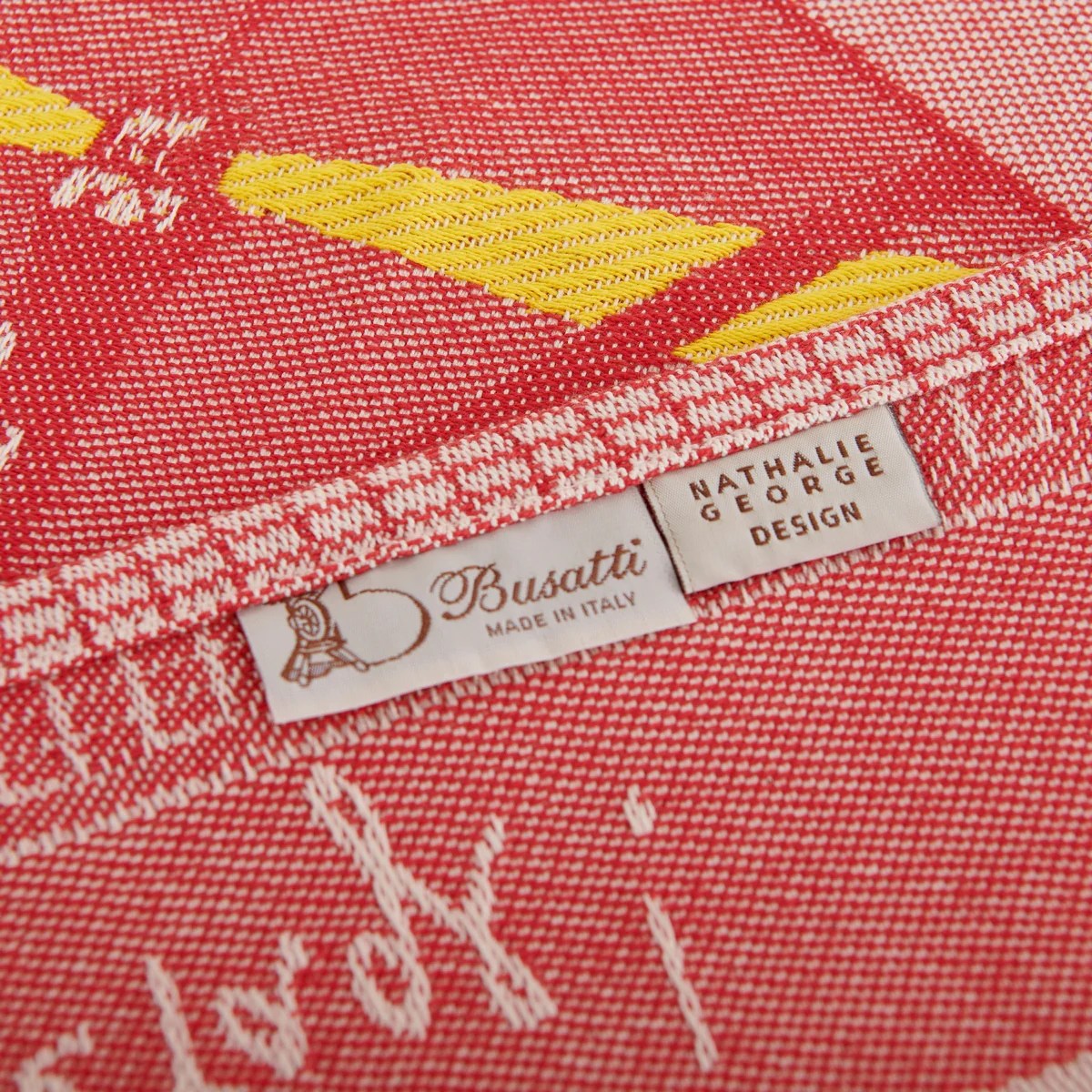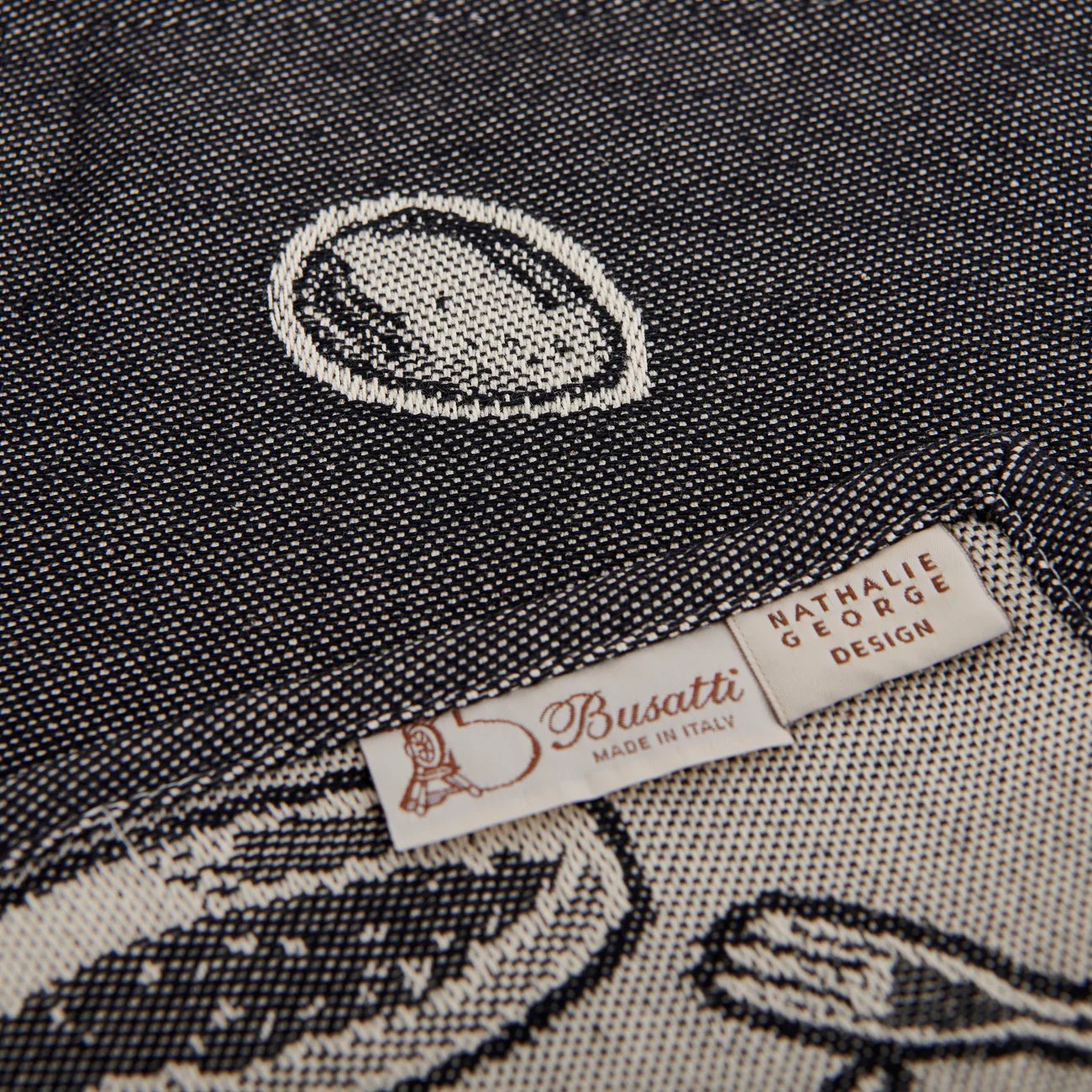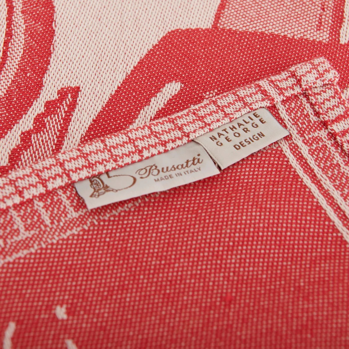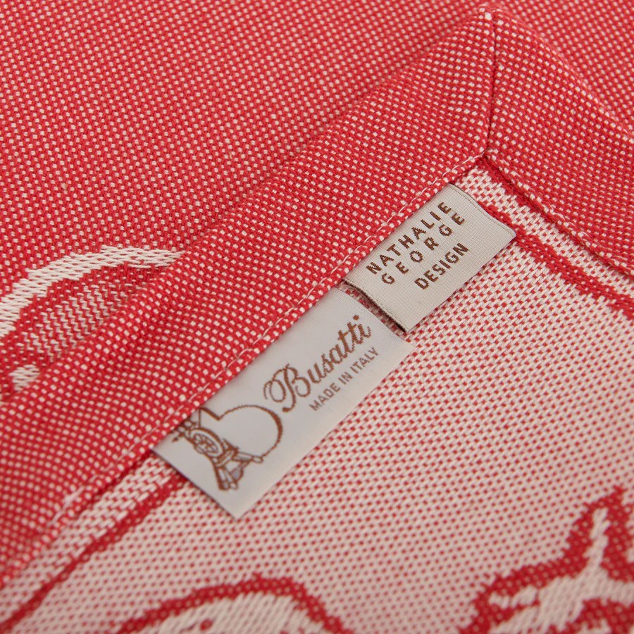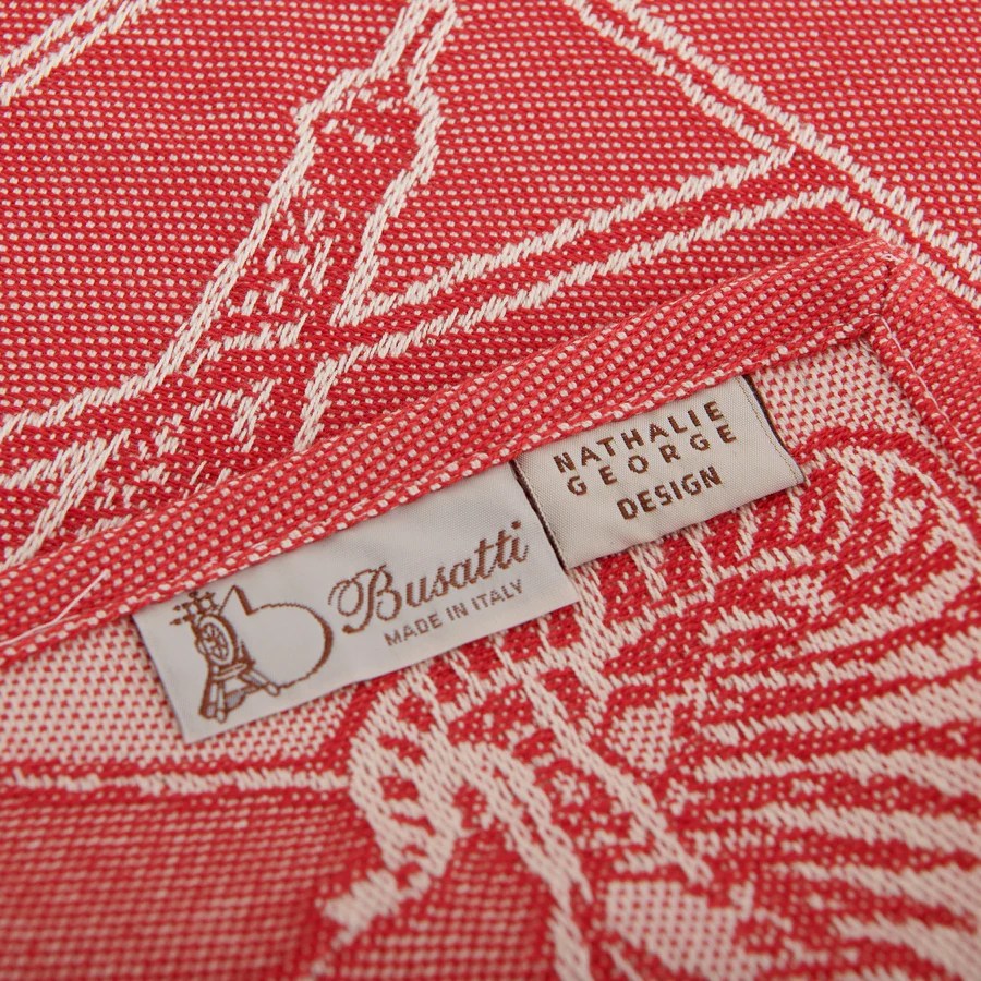Matière et fabrication : 100% coton, fabriqué sur les métiers à tisser jacquard des ateliers historiques de Busatti à Anghiari – Toscane (province d’Arezzo).