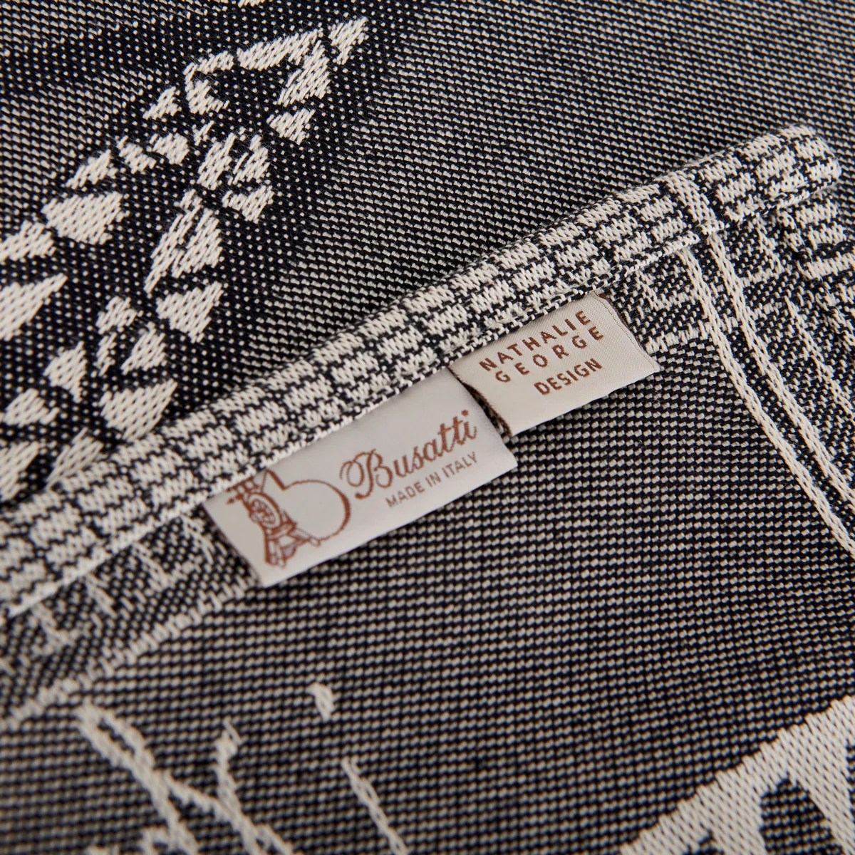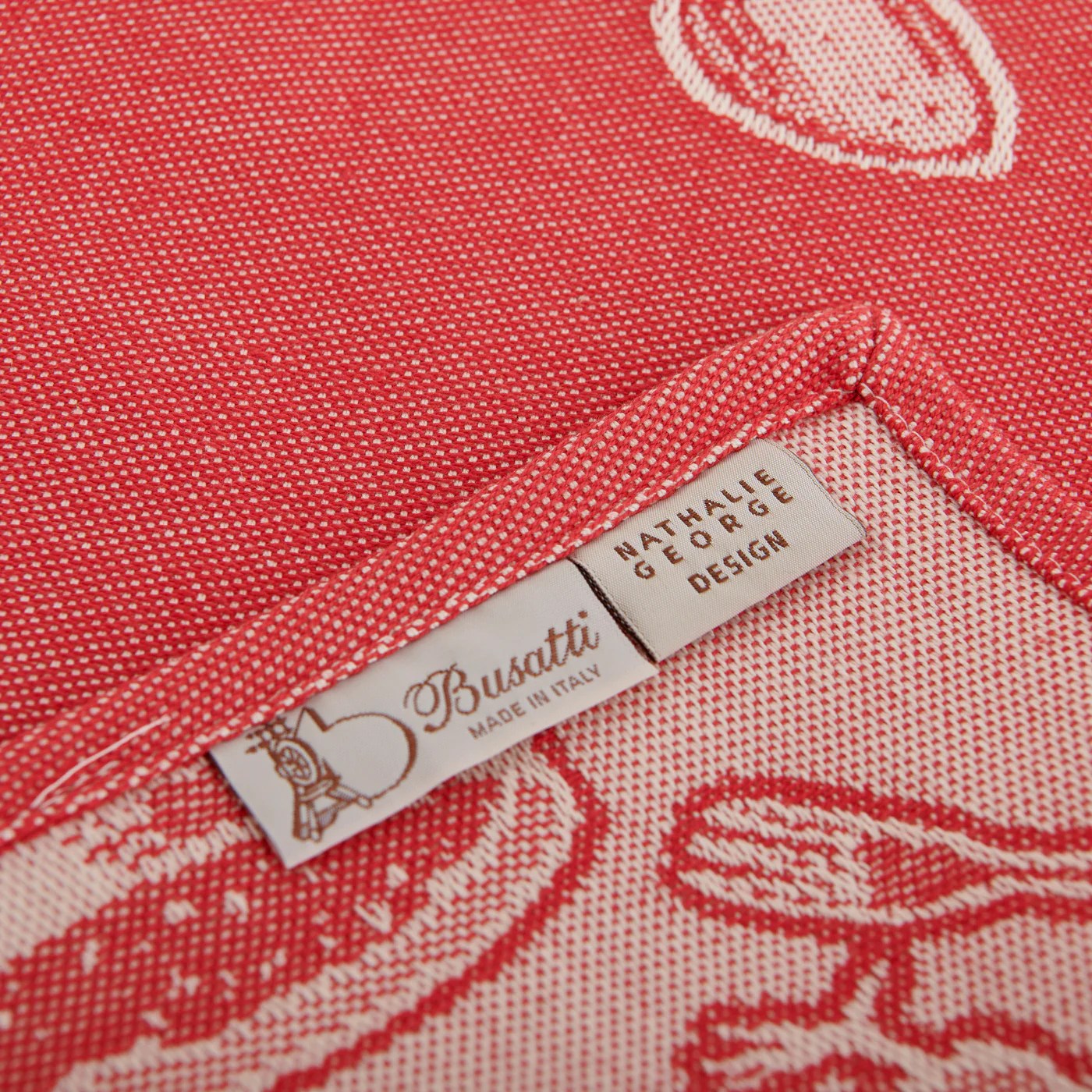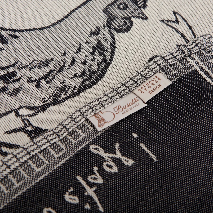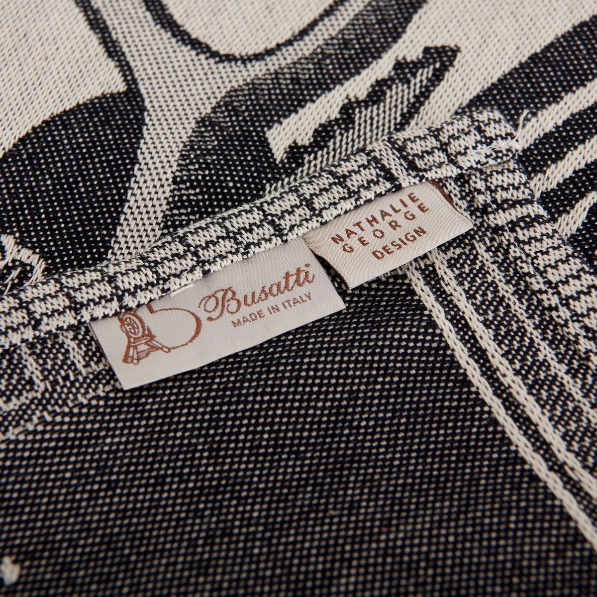 Matière et fabrication : 100% coton, fabriqué sur les métiers à tisser jacquard des ateliers historiques de Busatti à Anghiari – Toscane (province d’Arezzo).
