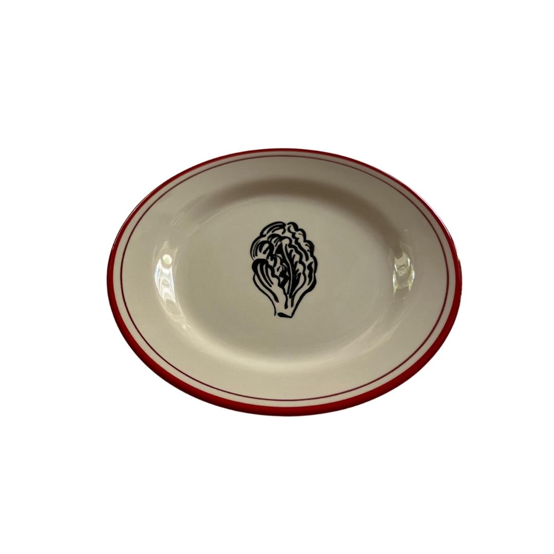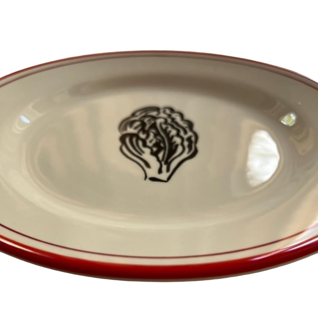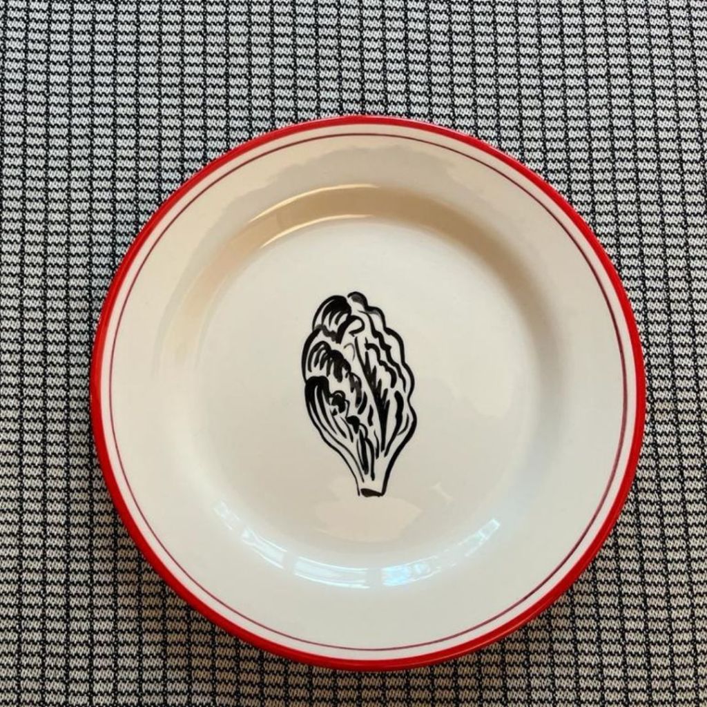 Dècors : filet rouge, contre filet bordeau et dessins : salade/trévises
