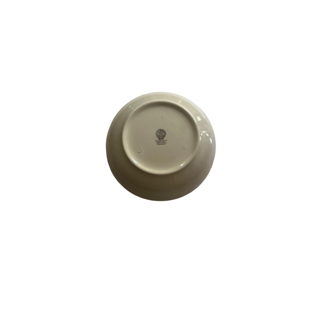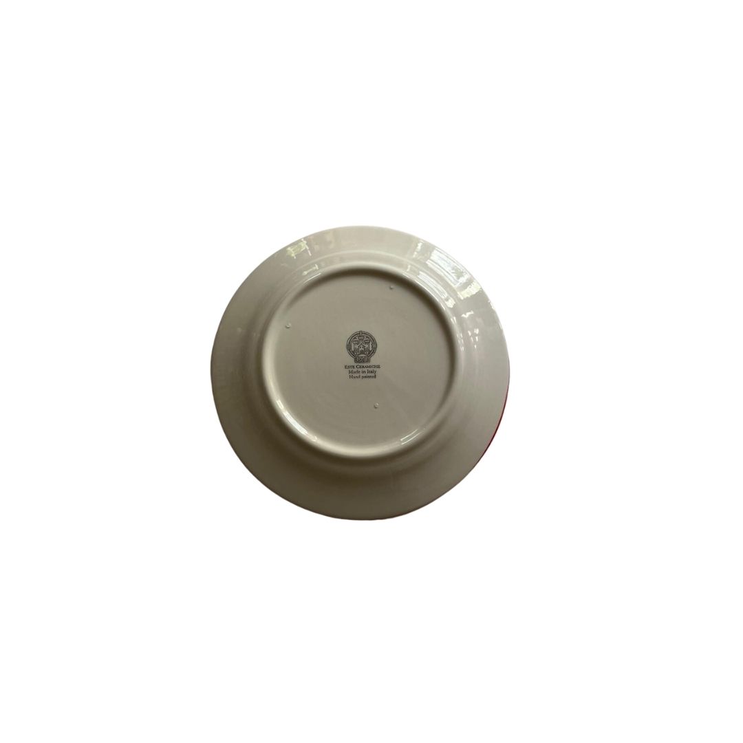 Matière et fabrication : pâte très blanche, fabriquée spécialement dans la règion de Vicenza pour Este Ceramiche. Dècors sous émail, réalisé à la main. Verni cristallin transparent. Deux cuisson à environ 1000 degrés.