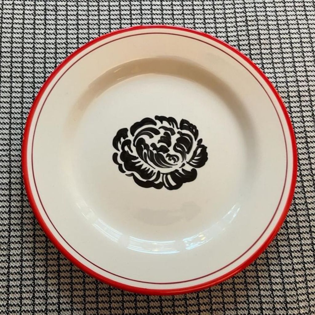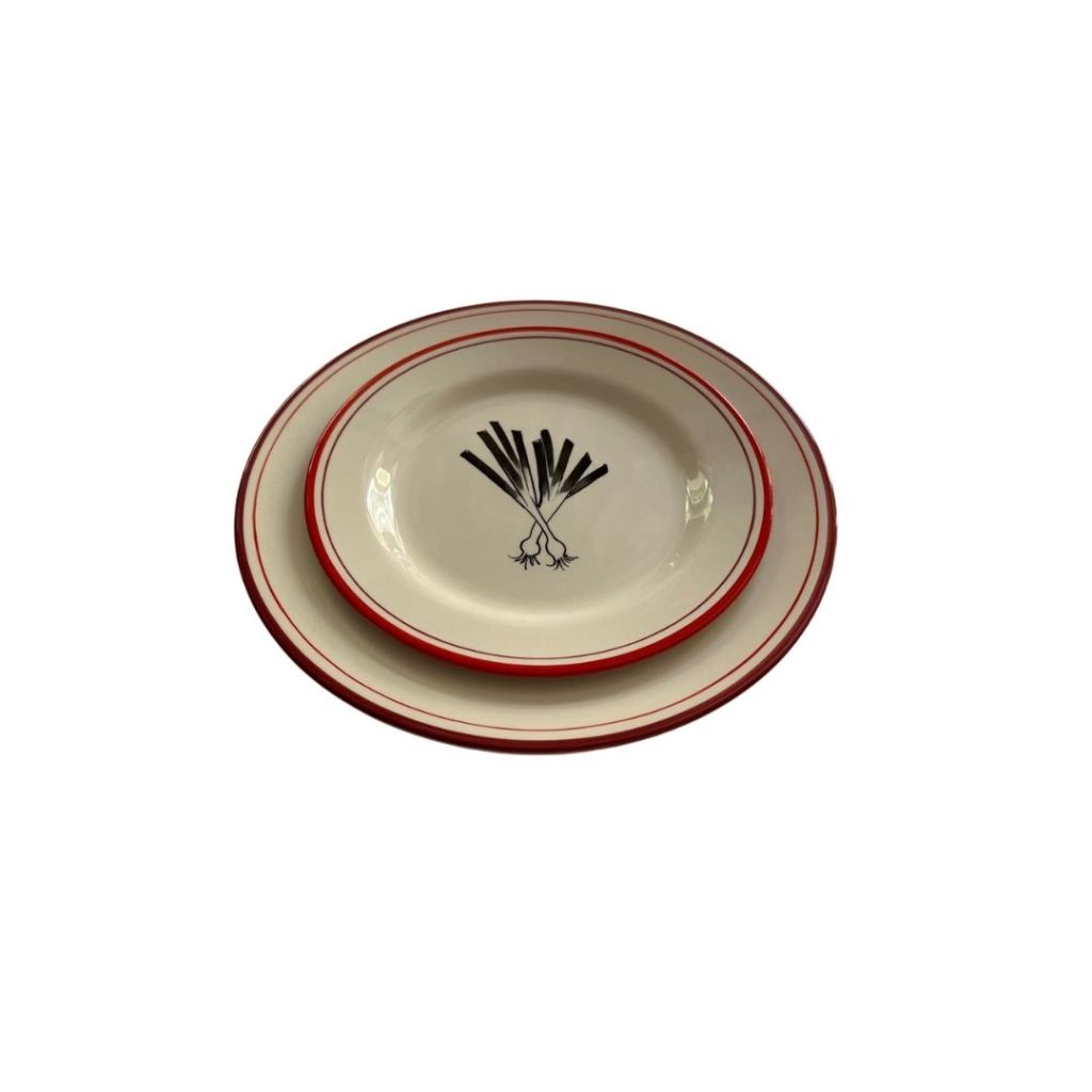 Dècors, filet rouge, contre filet bordeau et dessins : oignons nouveaux